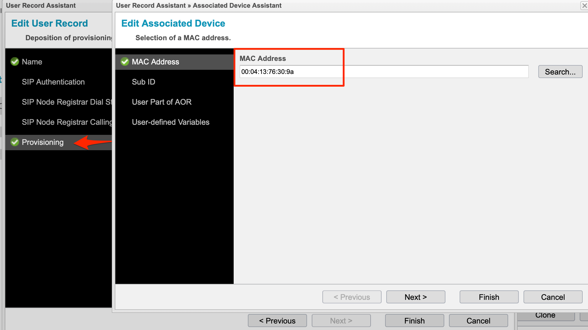 Edit your SIP user and go to the Provisioning tab. Enter the MAC Address of the phone, set the Sub ID and the AOR. That's it. The Sub ID is used to iterate through SIP Users if there is more than one enabled for a phone. Start with 1.