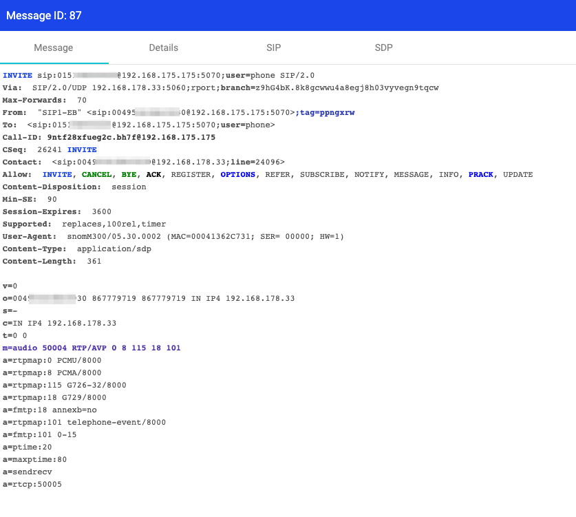 We have several SBCs running and manage them for our customers. Usual it all works really great, but sometimes we have quality issues or call drops or somethin else. In that cases, it would be great to have really detailed information about each call and each SIP package. Our SBC provides a CDR that records all calls, but it has only limited information on the calls (From, To, Result, Duration, User Agent, ...). Of course there is the possibility to run a "Debug Trace" but that is not intended to run permanent and most issues occur when the debug is not running.